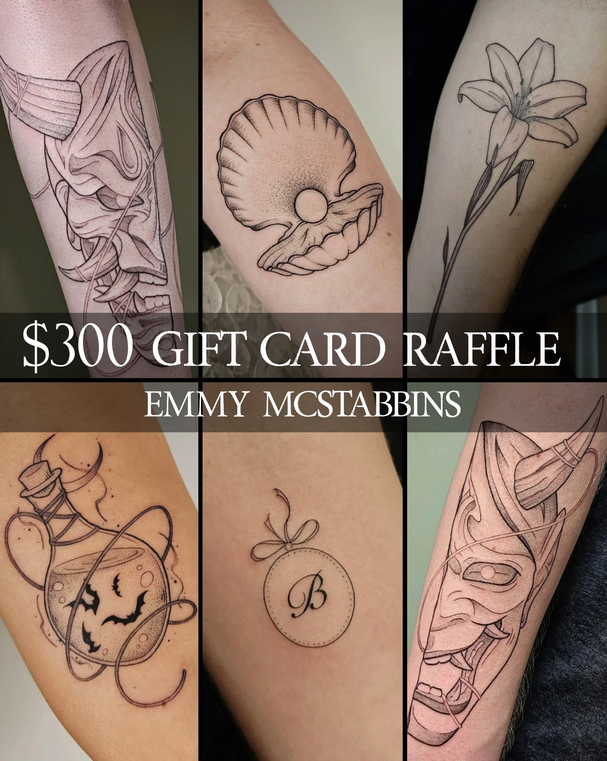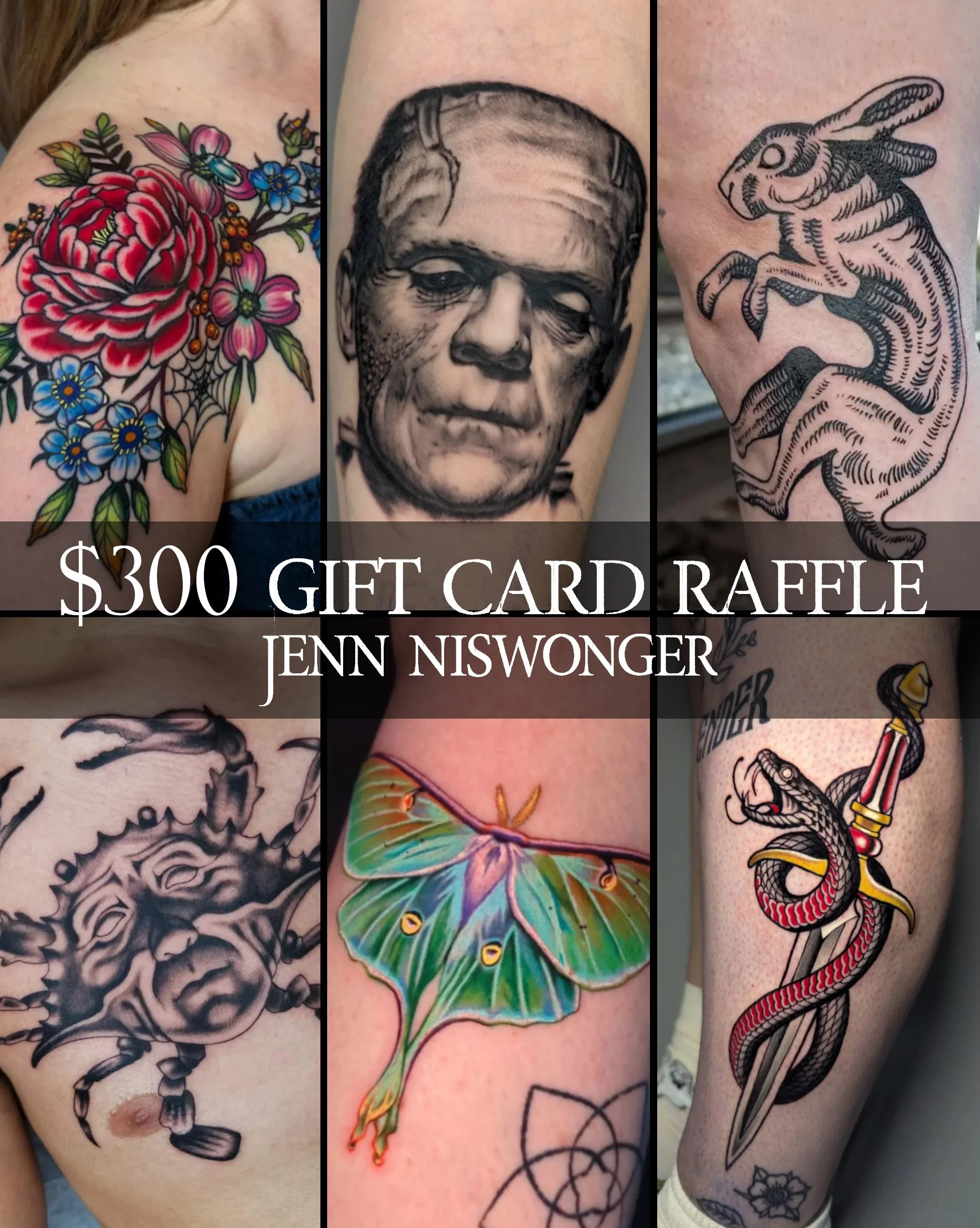 Artists will have tattoo flash designs priced between $50-200. We will also have raffles for various items and tattoo gift certificates with select tattoo artists. Each raffle ticket is $5 each, or 5 tickets for $20.!