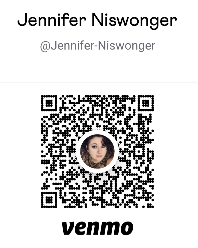 venmo @Jennifer-Niswonger (QR Links will be added below). Include in the notes the following: